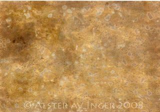 När det var blöttblött lade jag på den skrynklade plastfolien och lät det torka. Det syns inte så bra efter scannern men IRL syns skimrande pearlexveck där plastfolien legat mot.